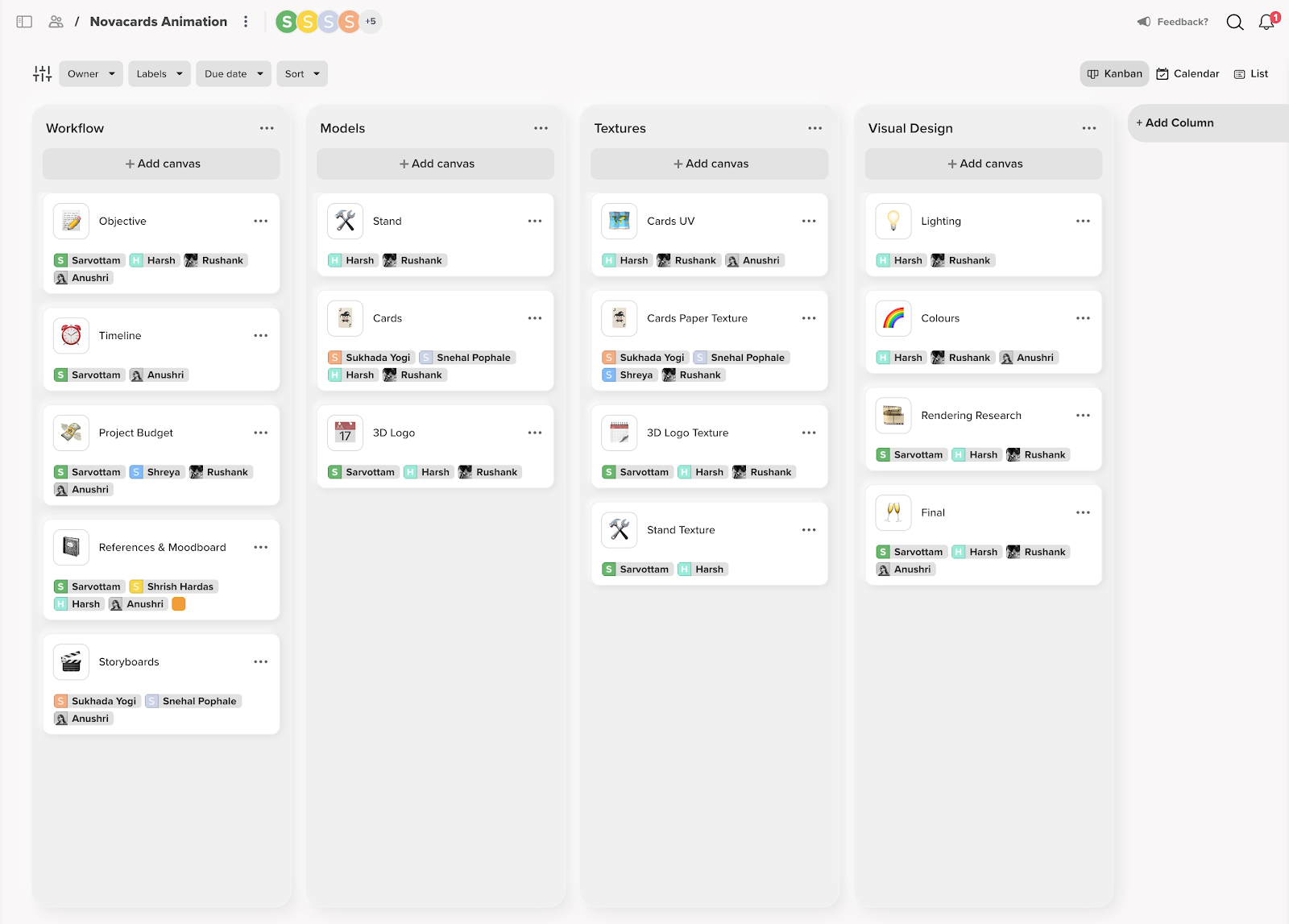 Allo’s canvases allow users to share progress updates and exchange ideas and feedback while functioning as an effective multi-purpose planning tool. Users can use the kanban boards as a light project management tool to track a project’s progress. The columns on a kanban board allow users to group and organize the canvas documentations they created. Users can easily label tasks or documents with different properties and can assign owners to each canvas for everyone to see who is responsible for which task.