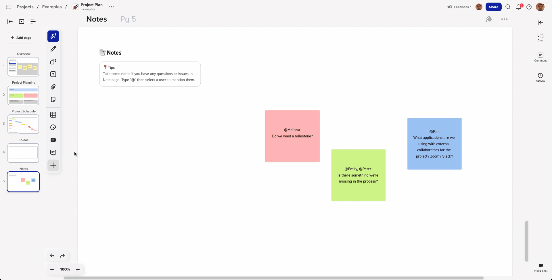 - Mention your colleagues using "@" to send them notifications for asynchronous communication.