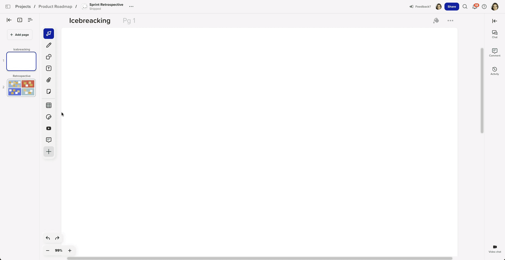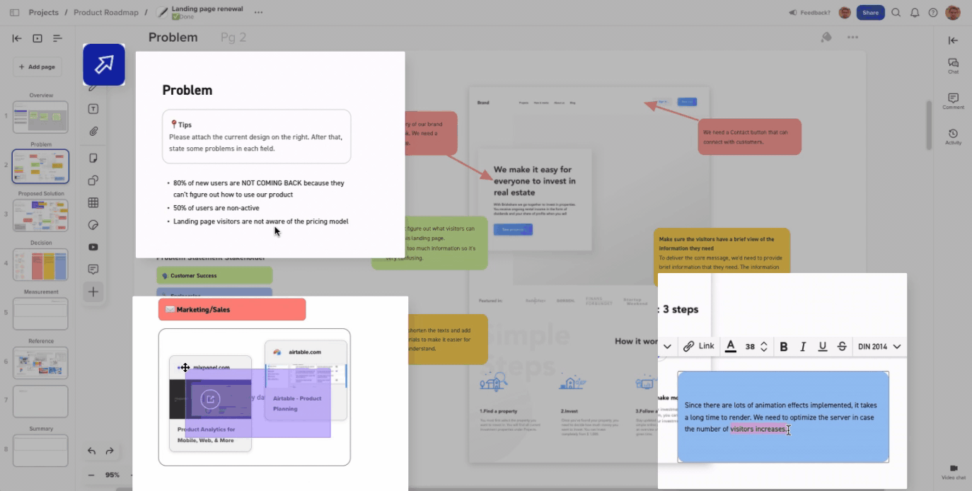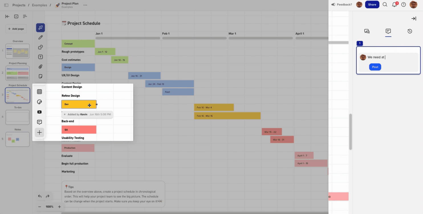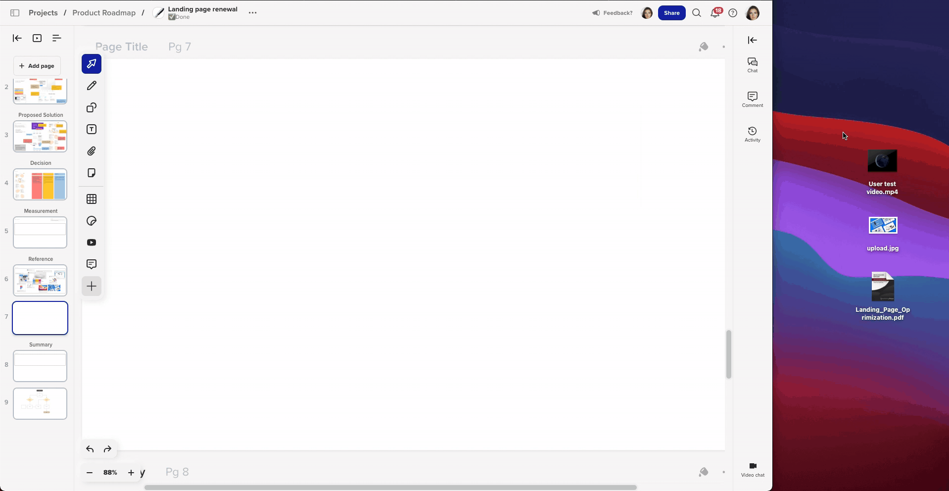 Drag and drop any YouTube video onto the canvas for in-canvas viewing. Great for user flows, marketing content, or reference material.