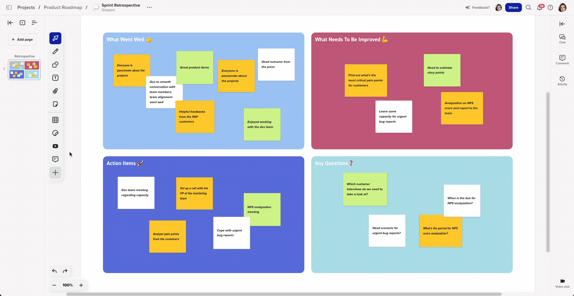 - Drag and drop stickies onto the canvas.