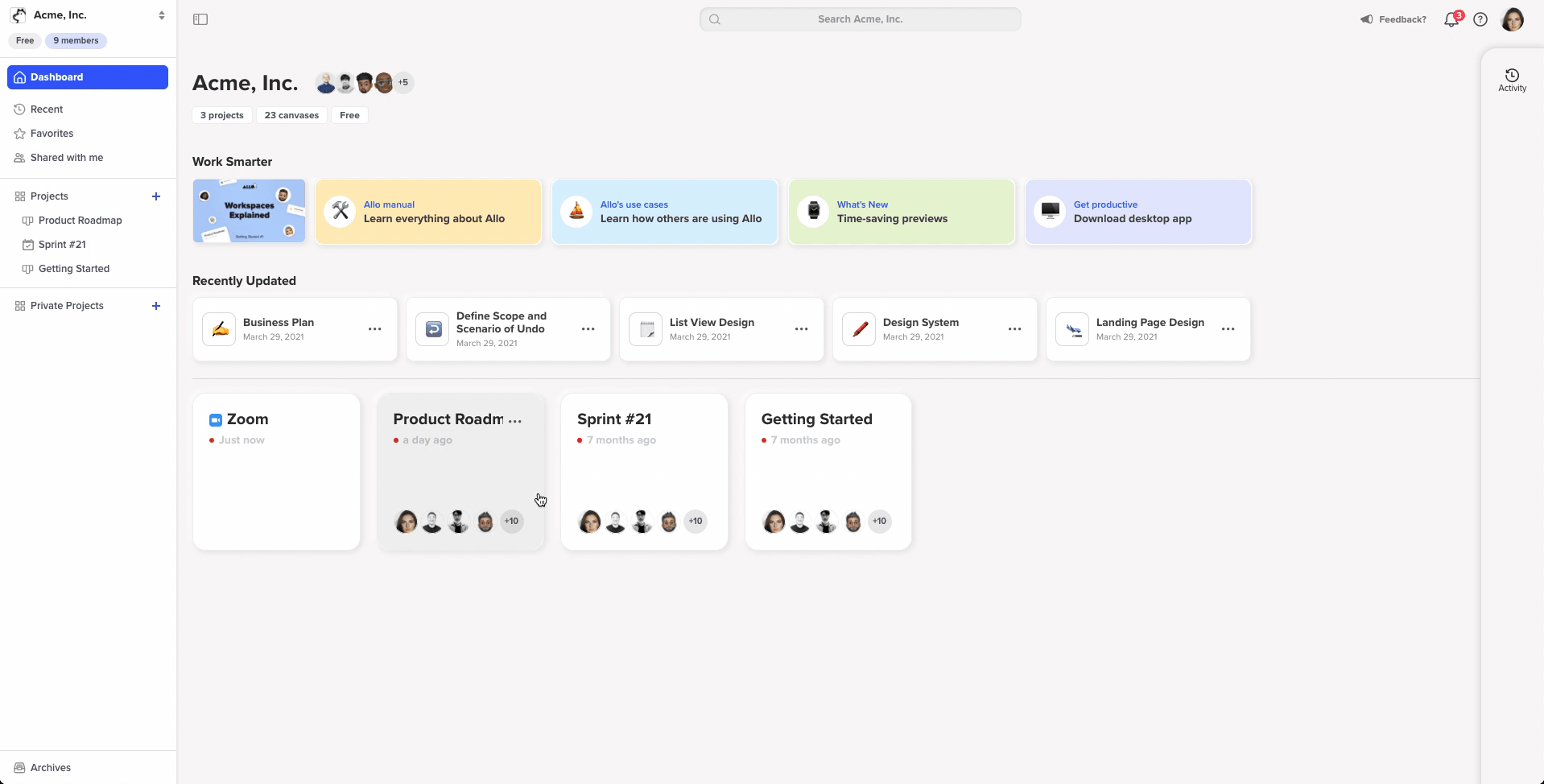 Other than canvas templates and page frameworks, being able to duplicate a project is also another way to improve efficiency when creating repeatable workflows. For instance, agile consultants can make one fresh SOP project, duplicate it, and share them with different clients. Or online teachers can create one fresh course project, duplicate it, and share them with different sessions of students.