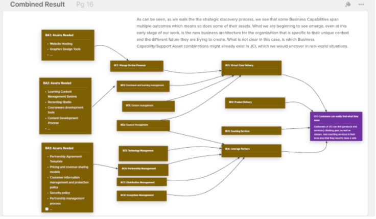Before creating a new course instance, Larry saves each canvas as a template that can then be easily duplicated in a ALLO project for an upcoming cohort of course workshops. ALLO also provides structures within the canvas in addition to the kanban boards. Unlike some of the other visual platforms with an infinite board, ALLO uses the page format— an aspect that is much more logical for Larry and his students to prepare for the workshops and then to follow along that aids both instructor and student.