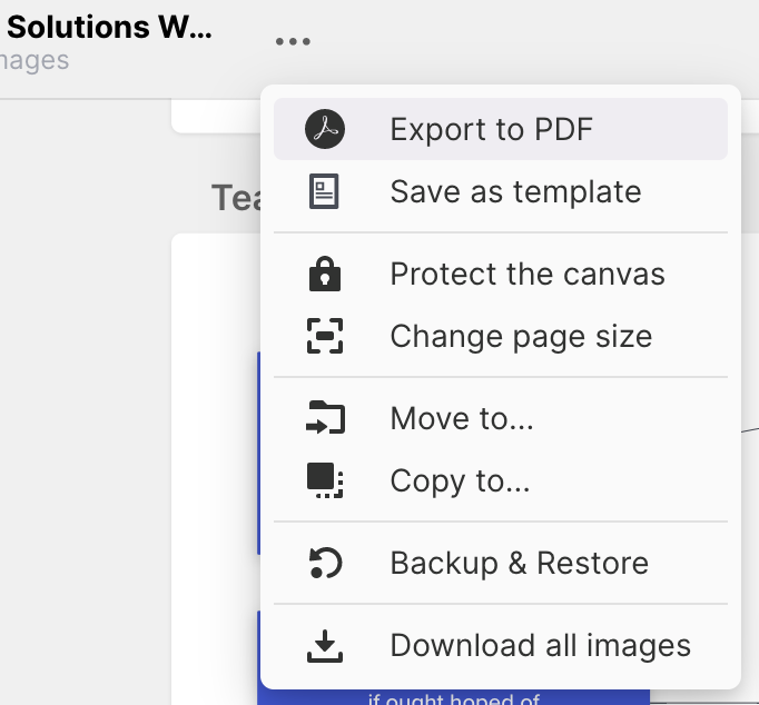 Course creators can keep the class project open to the cohort after the class is completed. They can also have students download a PDF of each canvas and its pages to keep as a permanent record to refer to shortly afterward.