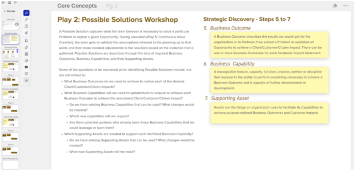 AdaptiveOrg’s Lean-Agile Strategy approach has six Plays. Each Play has pre-workshop materials that students need to study before the start of each workshop. The pre-workshop and workshop canvases are templated for the course, so each new course cohort can be set up quickly and easily.