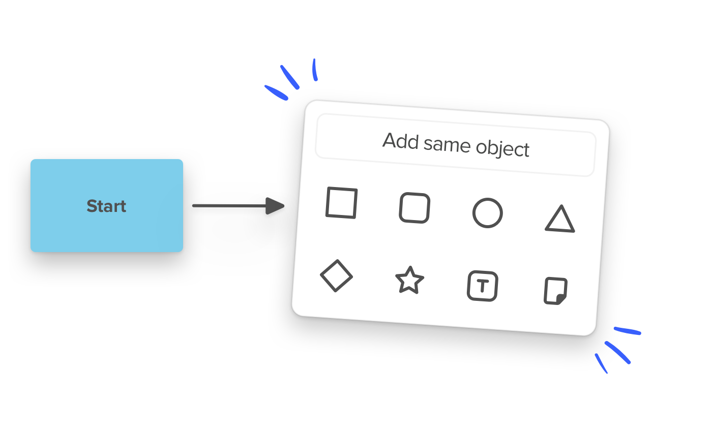 Just one month after our revamp of the shapes selector, we put the team to work trying to figure our how to make diagramming even quicker. This led us to our newest functionality, shape selection as you go, in-context, now at any endpoint users will have the option to duplicate their previous shape or quickly create a new shape. This makes creating diagrams and flowcharts even faster. Chimpallo is even attempting a world record🙈.