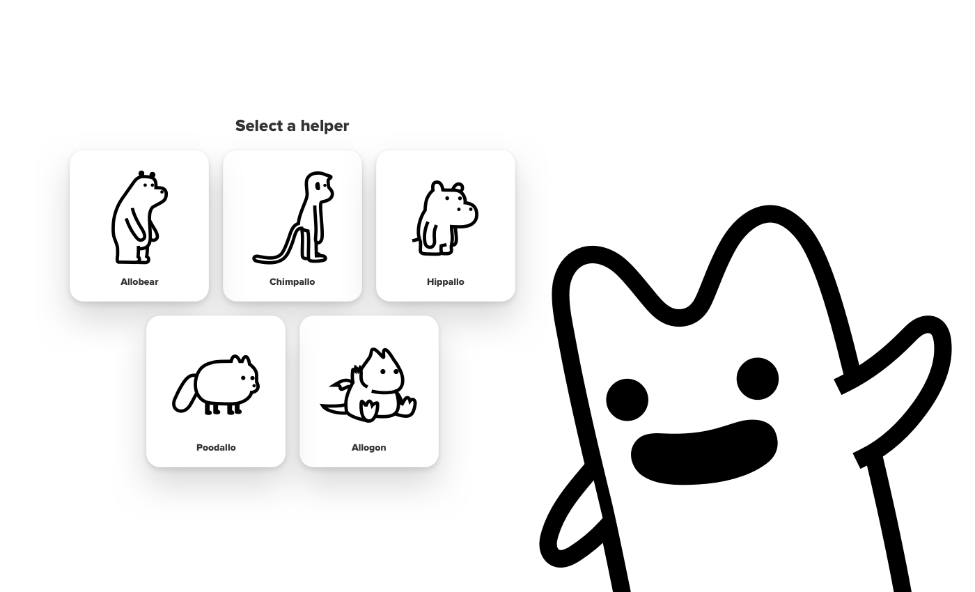 Our special Allo friends are now standing by in-app to offer new users a tour and helpful hints when first coming into Allo. Their training doesn't stop there as they are well versed in common questions, use cases, and even where to get a hold of the Allo team. Say hello to Allobear, Allogon, Chimpallo, Poodallo, and Hippallo.