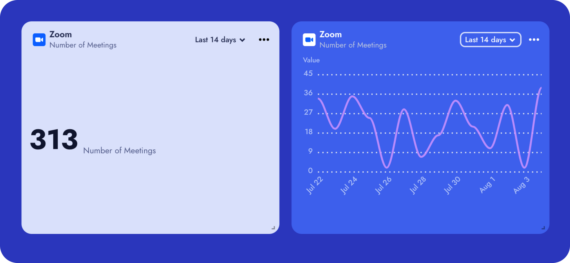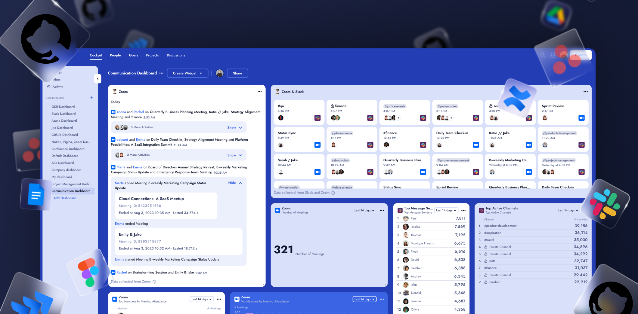 That's exactly why we developed ALLO Cockpit, your go-to platform for comprehensive team analytics, including valuable insights from Zoom meetings. Our pre-set dashboards yield immediate insights by merely integrating ALLO with your diverse team apps, including Zoom. No longer will you have to navigate complex analytics or shuffle between various apps. With ALLO Cockpit, all data is centralized, prioritized, and at your fingertips. Enable ALLO to streamline your management tasks, tap into the potential of Zoom data, and guide your team towards increased productivity.