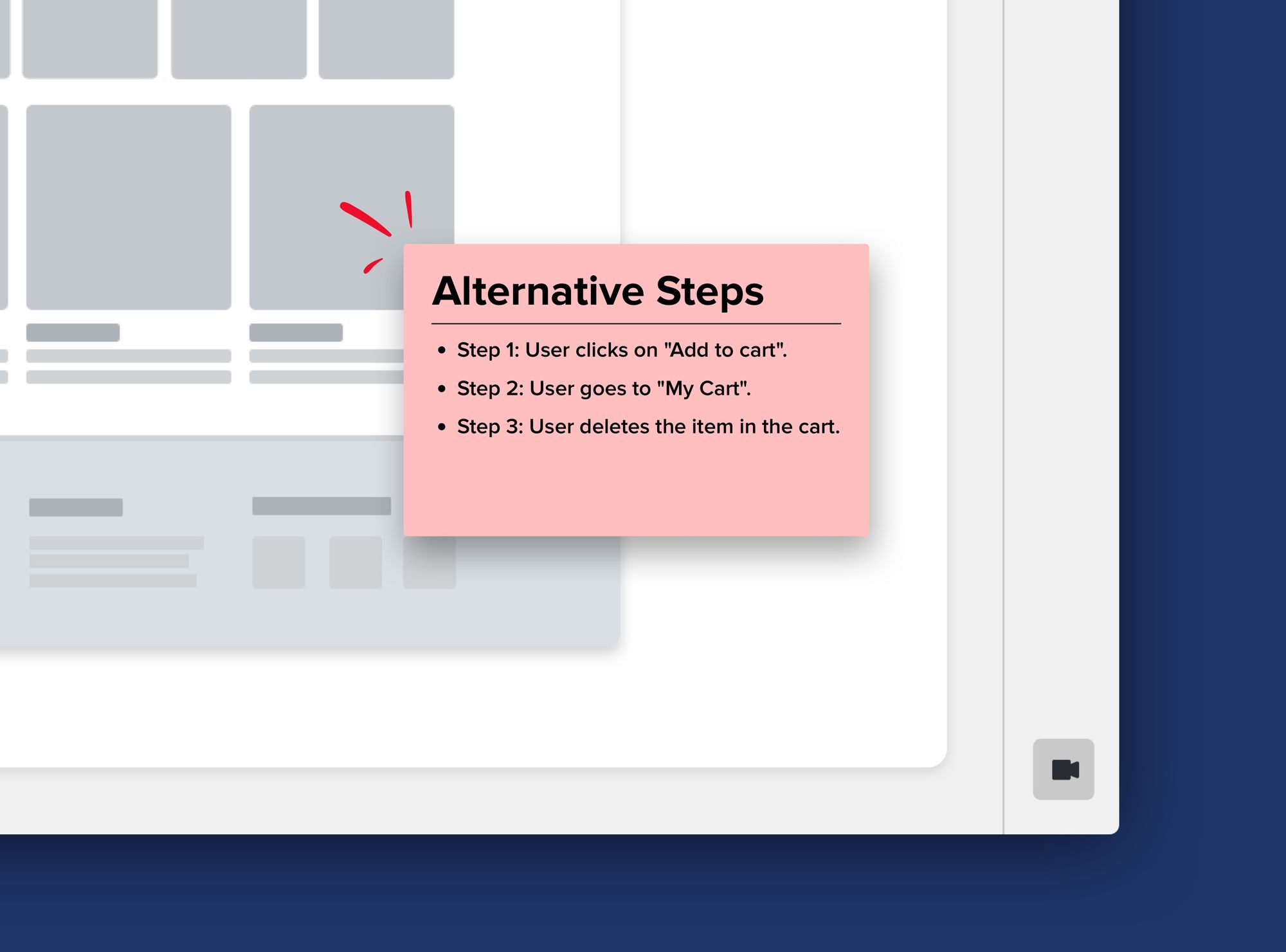 With a new possible user flow in mind, the developer can post a sticky note next to the related screen, and list out the alternative user steps.