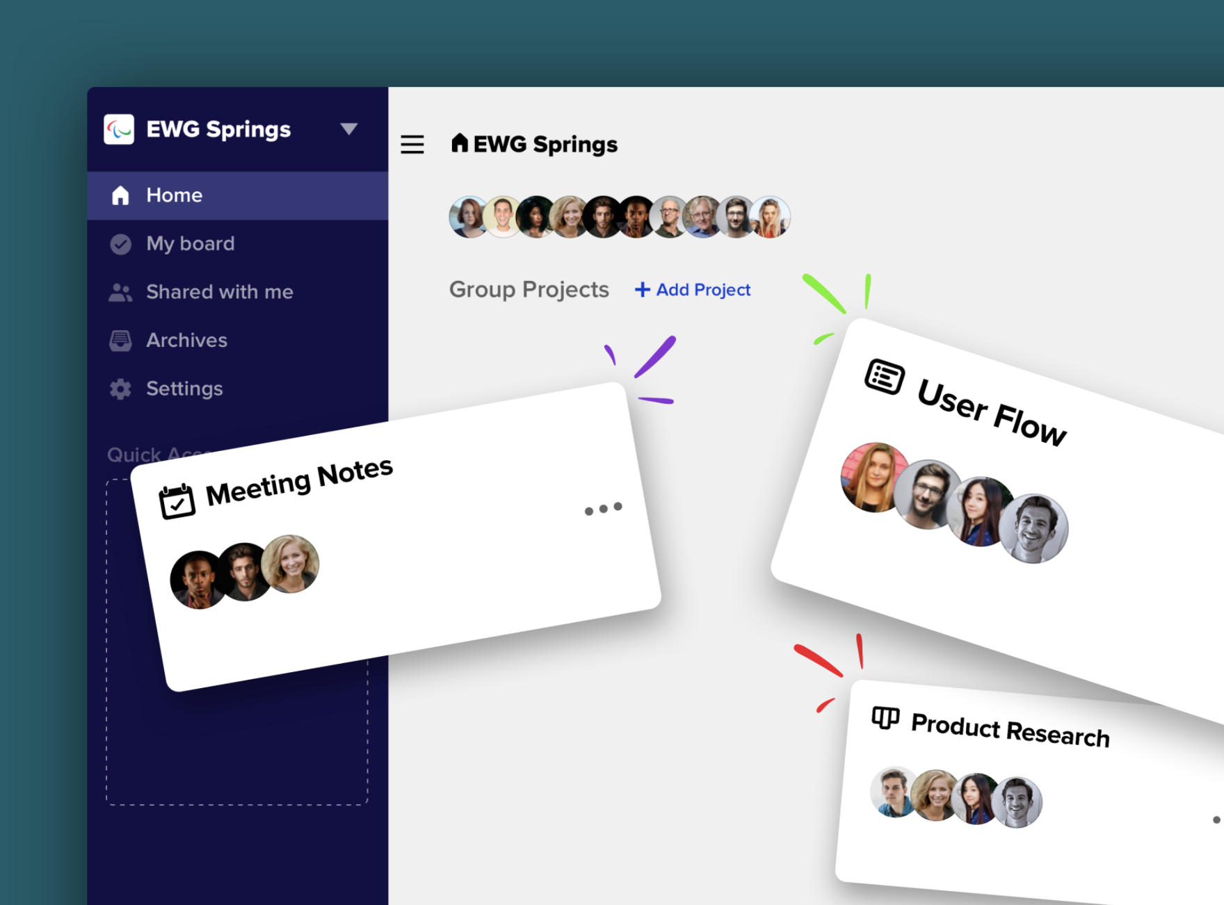 Anyone with the link can quickly get on the canvas and start collaborating as guests instead of having to sign up for an account or log in. This gets rid of the redundancy seen in other canvas platforms that require user accounts to participate.