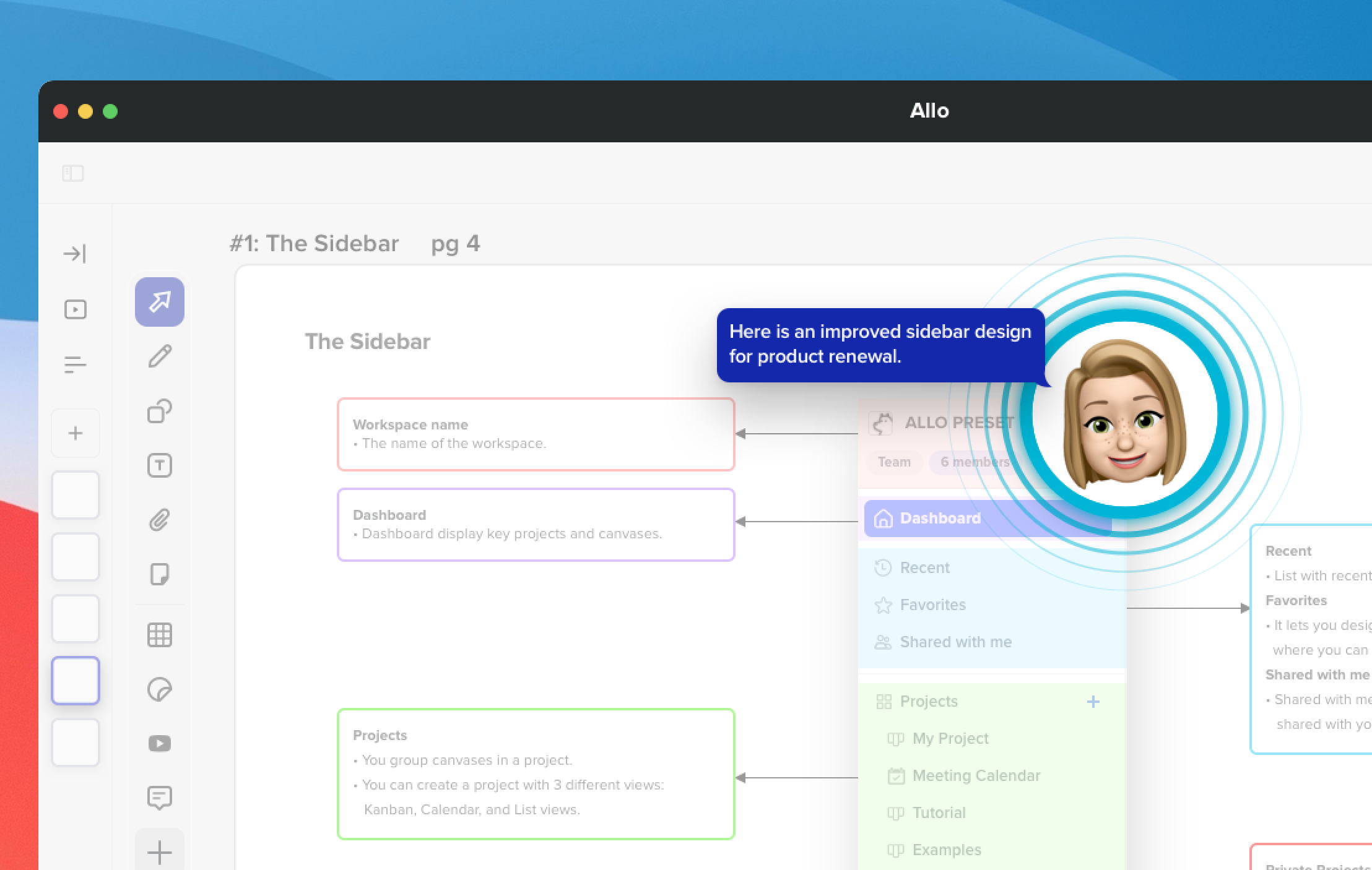 Do you ever wish you could leave a quick note for a team member on a project? At Allo, we get it. Sometimes the meaning of messages get lost in text and sometimes simply being able to add a voice note can help you get more done by adding context to visuals within the canvas. That’s where Voice Memo comes in, simply click on Voice Memo and leave a voice message anywhere you’d like within the canvas! Click here to learn more about Voice Memo.