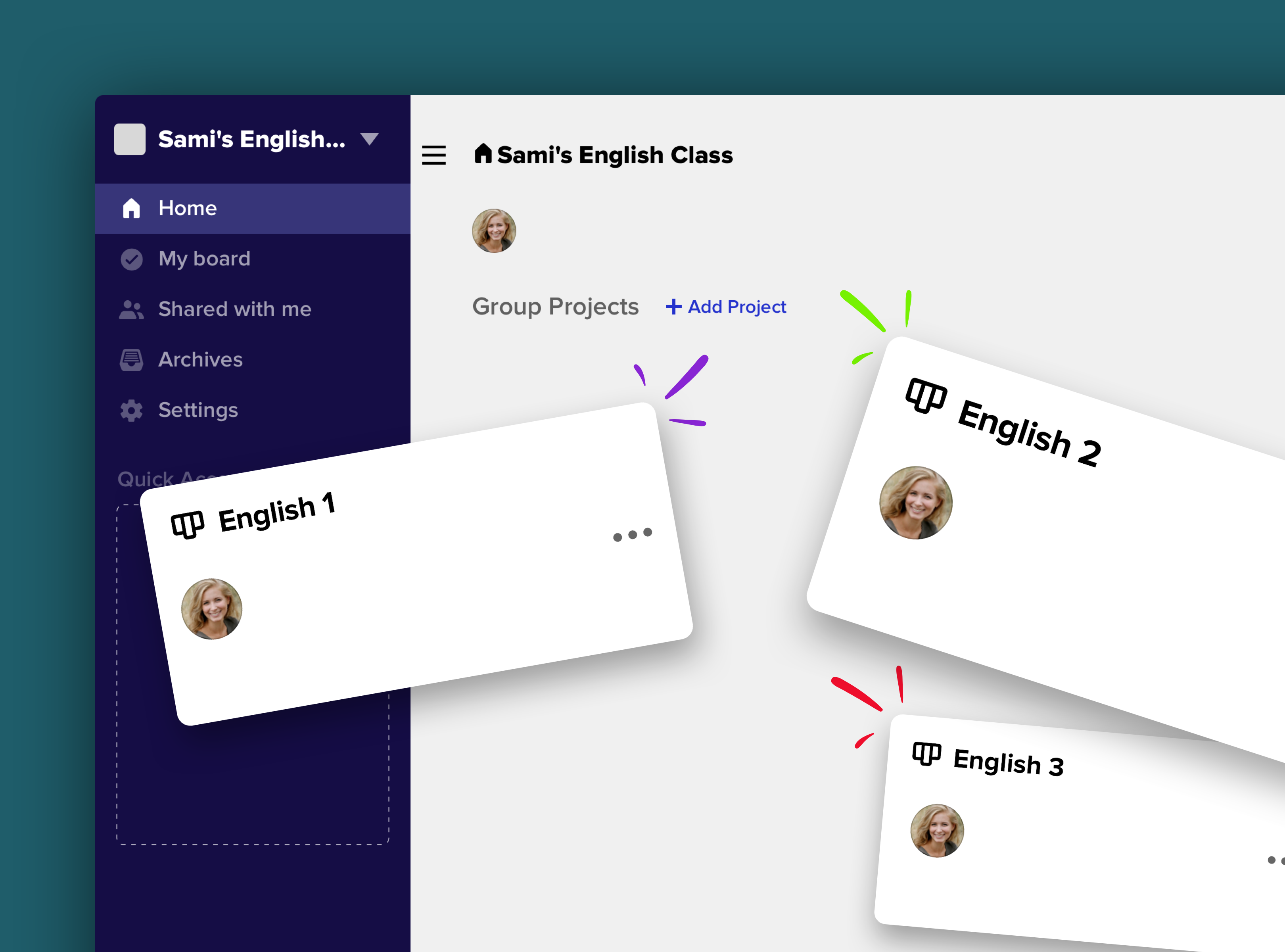 Sami arranges all her class materials in Allo. As she teaches different levels of English, she creates a project for each level.