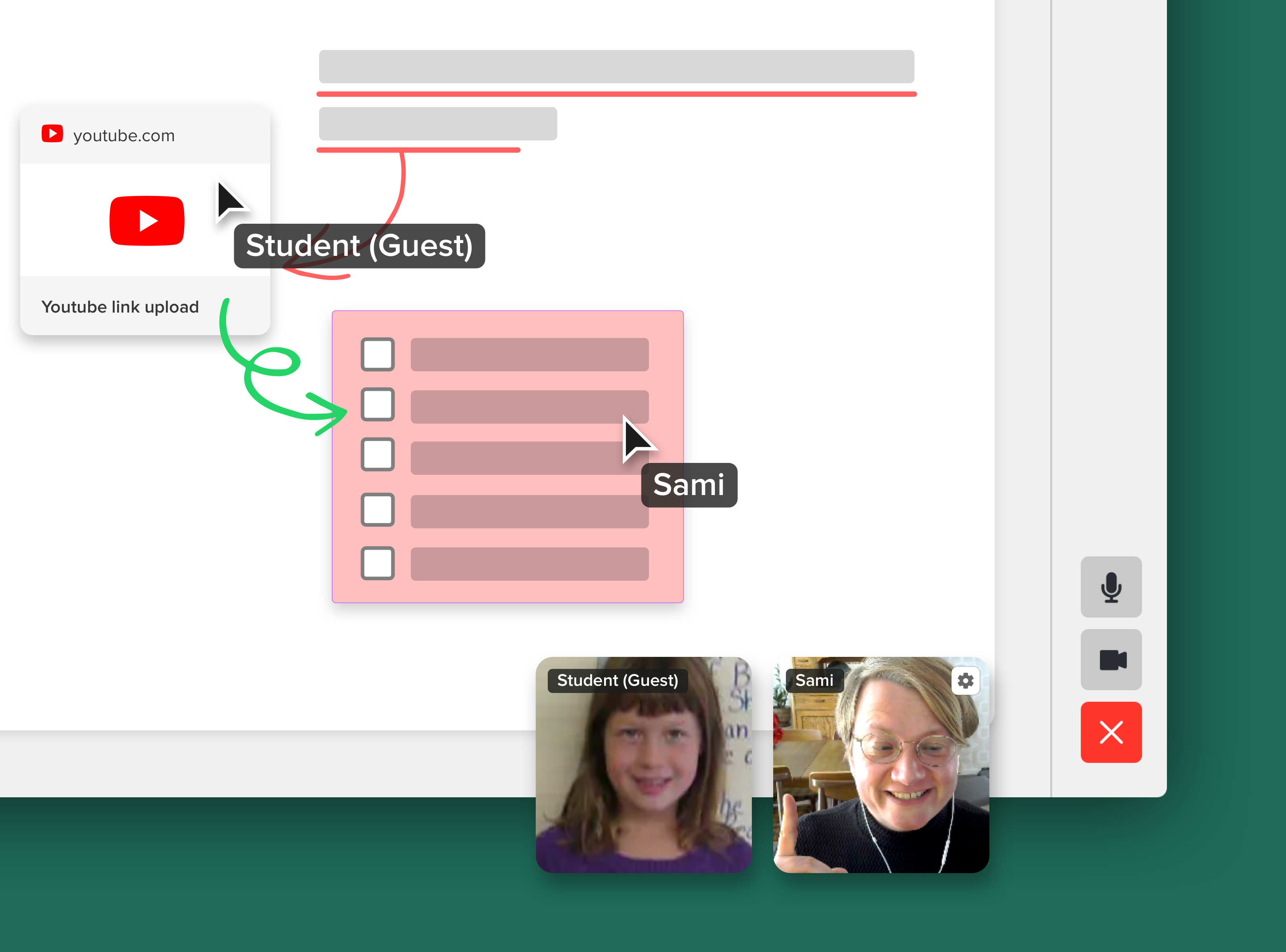 When the class starts, Sami will share the canvas with the student and ask her to jump in. The student does not need to sign up for Allo and can simply interact with Sami on the canvas as a guest. Sami and the student will then start the video call on the canvas. With the cursor tracking feature provided, Sami can also easily know if her students are following the class well.