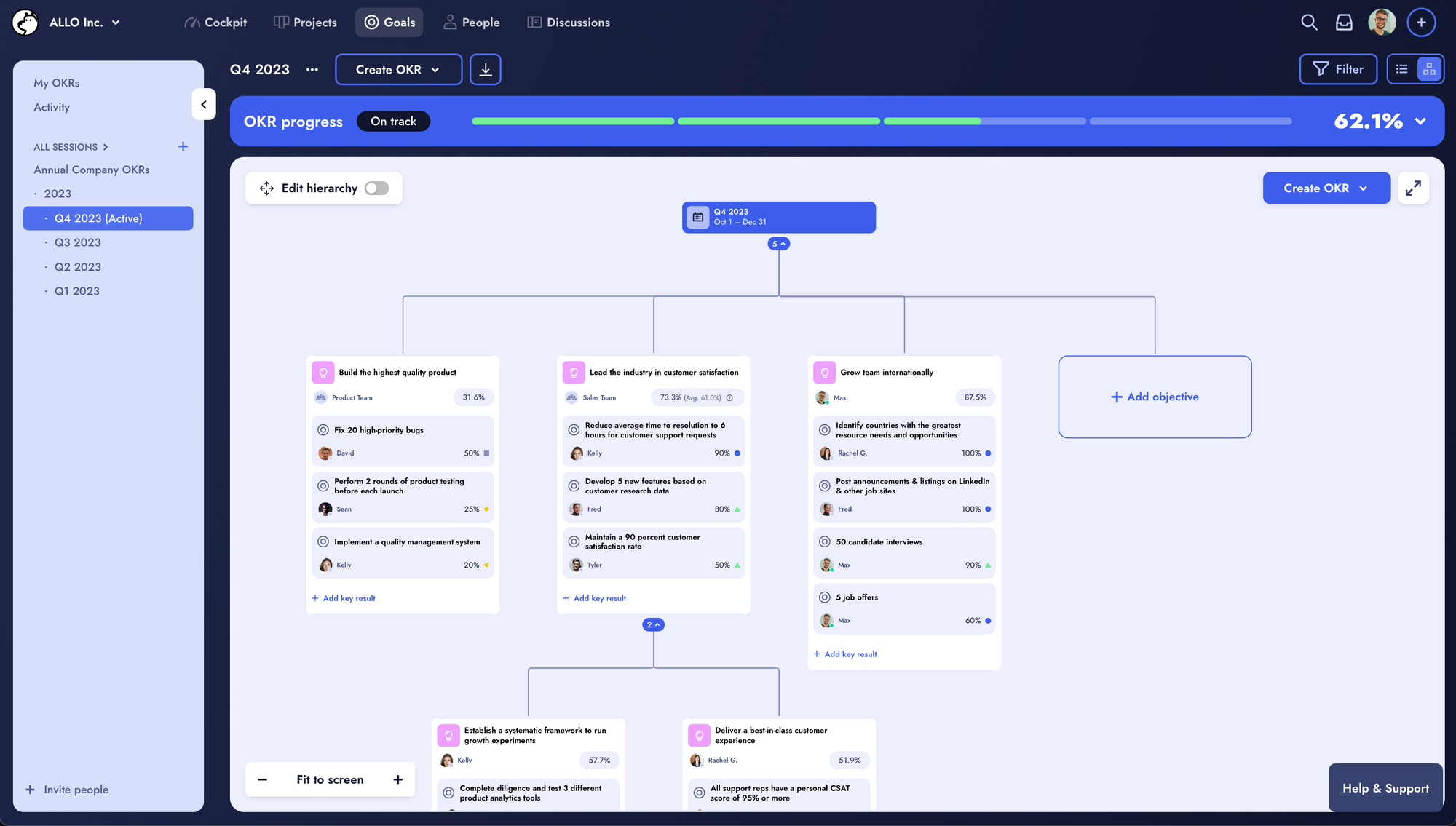 Encouraging a collaborative culture is another key factor. Tools like ALLO offer a collaborative space where teams can work together directly within the set goals. These platforms allow for the integration of files or documents with the established OKRs, ensuring that the goals and the actual work are interconnected.