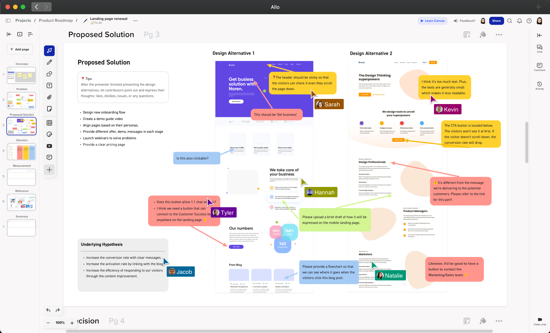 Allo’s canvas is a virtual whiteboard that allows you to collaborate remotely by efficiently organizing thoughts and ideas.