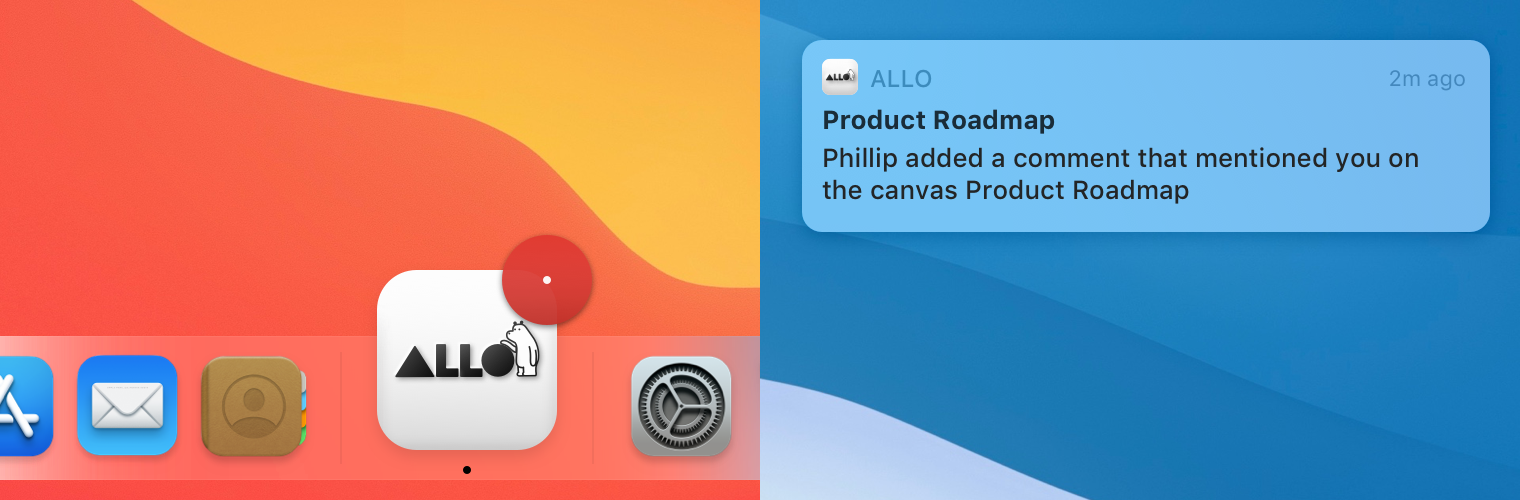 - For example, on macOS, a notification badge appears on the App icon in the Dock when there is an unchecked notification to notify users from time to time, and it also appears in the menu bar for easy access to Allo.